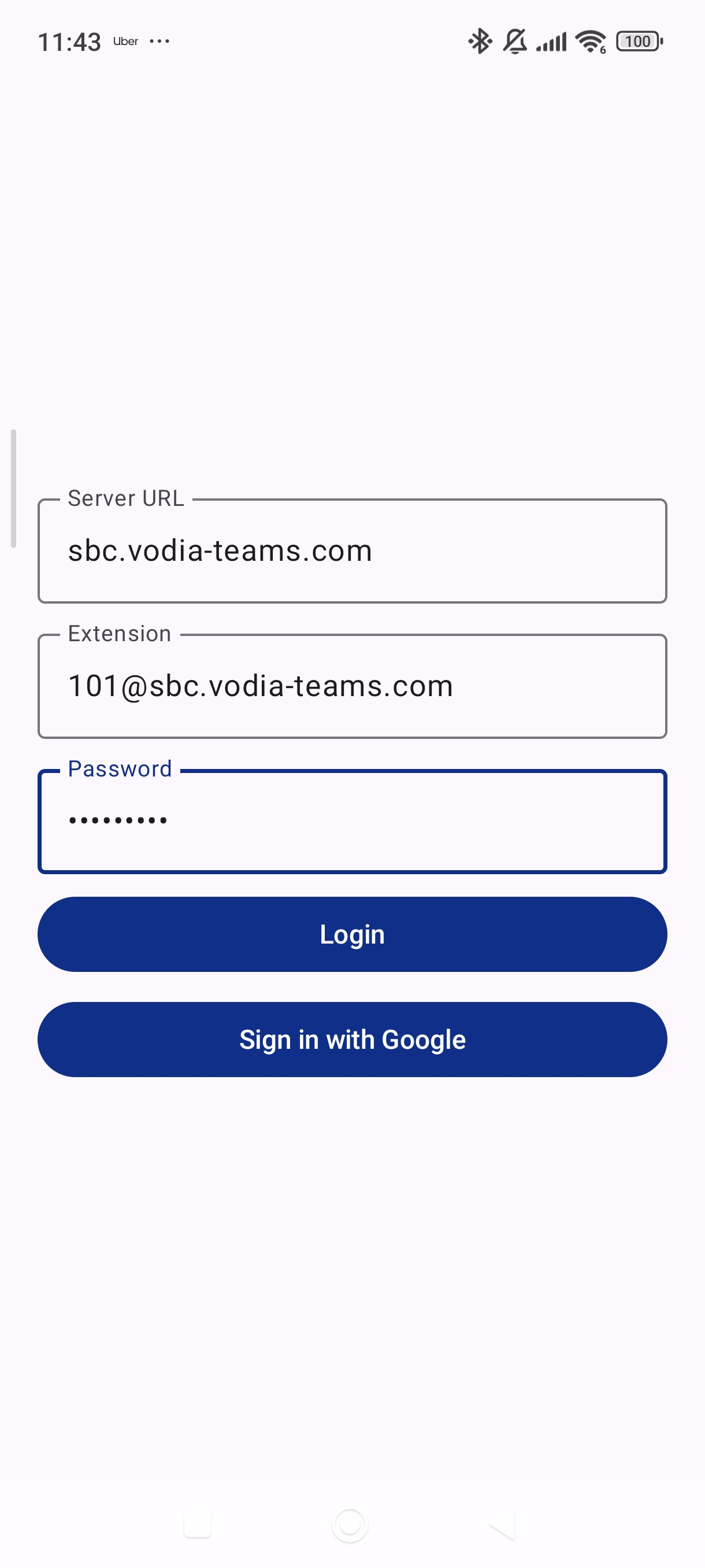 sbc.vodia-teams.com) - On the next screen, enter the extension and SIP Password